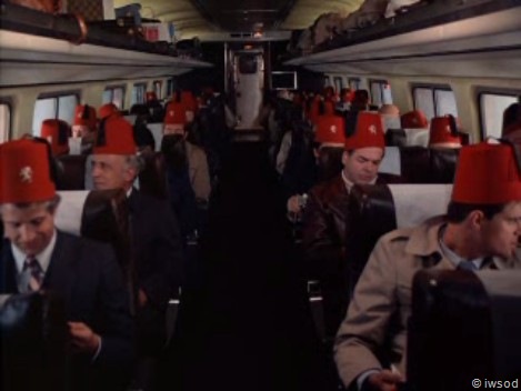 Doesn’t Amanda look lovely? Ok, so she gets on the train, with a bunch of other passengers.. Lee doesn’t say which carriage.. so there is going to be only one passenger on the train in a red hat? hmmm as it turns out.. it is the red hat carriage!!! With the red hat convention in progress!