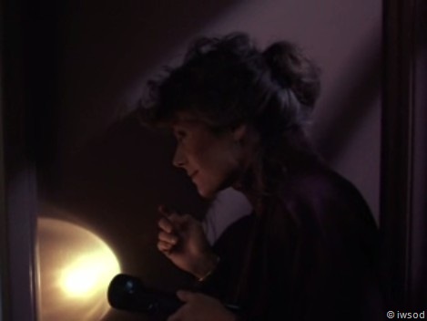 Oh yeah Lee, good instructions.. poor Amanda! “just check”???!!! It is really cute how she opens the 70 excuse me!bathroom door whispering “excuse me”!!! and why was frank under the kitchen table? Had the bad guys already come by the time they arrive? You would have thought they would have taken the shorted out hairdryer with them to avoid anyone making a connection.. (hmm so maybe they didn’t) Poor Amanda, the old hand around the ankle in creepy dark house would have done me in!! Oh my gosh.. the guy in the balaclava would have totally done me in!!!! I think she copes really well! Ahhh the tortured and afraid “Leeeeeeeeeee!!!!!!” I think that is the first time we hear it isn’t it???? !!!!!!! ahhhhh.. the first of many more to come! I have no idea how one minute he is walking up stairs and leaving Amanda and the next he is outside in front of the garage.. it sounded like he was chasing the kitty..