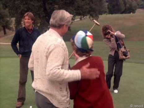 On to the golf course.. and the first shot is a ball landing on the green. The Baddie Gordon Standoffish and his wife Emma compliment ‘Brad’ (ie Lee) on his shot.. love that Amanda doesn’t join in! hehehee.. Well she did say Golf isn’t her game.. Amanda’s ball is back in the swamp! hehehee.. (if Amanda is trying to play golf with all that photographic equipment around her neck – she should get a few extra strokes!)