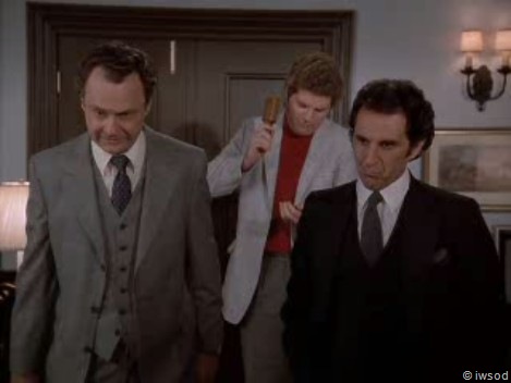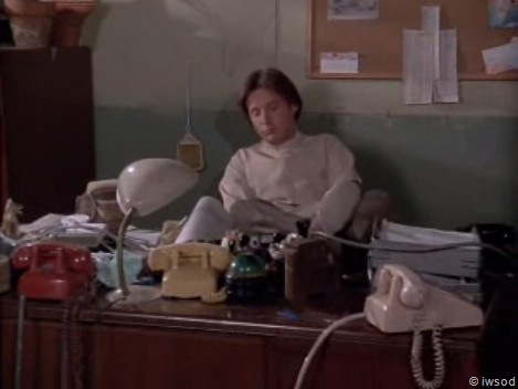 .. yes, the world is peaceful.. and the camera pans over to Lee asleep in a chair in a straight jacket!!! (Karen did you identify this music??? it has some significance doesn’t it?? can you share with us what it is?) hehehee.. with all those phones on the desk, you couldn’t pick up a pencil with your teeth and dial the operator to call for help???!!!