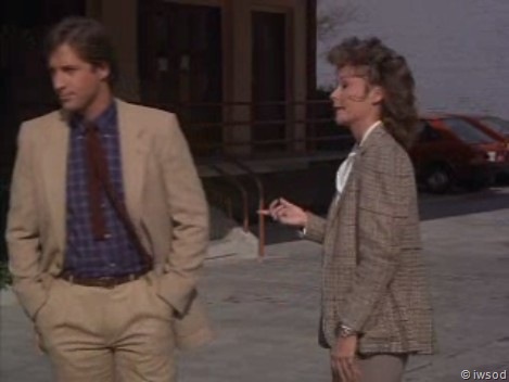 I find this whole dialogue weird.. how is it that Lee can’t grasp the concept that someone thinks IFF is real?? eh??? what are we turning Lee into a scatter brain now?? It is obvious this whole dialogue is to explain how the cover works to the audience.. we can understand Scotty thinks IFF is a real film company, we don’t need it explained! Or at most, one line would have done just fine.. this way makes Lee look it was his turn for a lobotomy.. at least for once it is not Amanda they are dumbing down! How could Lee not realise someone might believe the IFF cover.. come on!!! (btw- I’d just love it if Lee took me to a movie on the romance of earth worms.. ROFL!!) Considering Lee is being a dill here Amanda is being very patient with him.. she talks him out of his stressing and calms him down nicely.. way to go Amanda.. ( I say that a lot don’t I! Well.. she is a trouper!) and off Lee goes to talk to Scotty with Amanda trying to keep up with him..