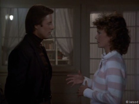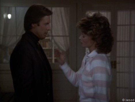 I love how they have this lengthy conversation right in front of the window to the family room- where Dotty could see them were she to come back… and then.. Amanda tells Lee to stay right there!!! right out in the open in front of the window.. eh??? no wonder Lee runs off..