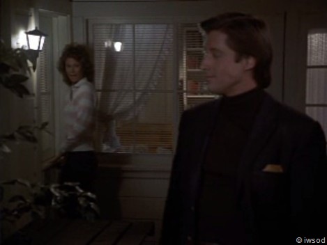 2. As sweet as the outside scene is with them, it’s undermined for me by the fact that Lee LIES to Amanda. He assures her he’s going to stay right outside the house, and when she goes in he immediately hustles off to the surveillance van. I do think Amanda is in full-on lusting-after-Lee mode at this point, though I’m not sure what triggered her sudden ardor. Well, Lee does look hot in that turtleneck.