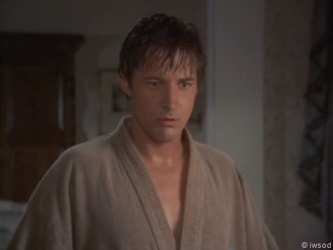Well! Here comes Mr clean pits now! Finally!! I can’t believe Lee brought his own robe! that’s a bit weird isn’t it??!! ha! Love how he comes out drying his wet hair with a towel and just dumps the wet towel on top of a dressser!