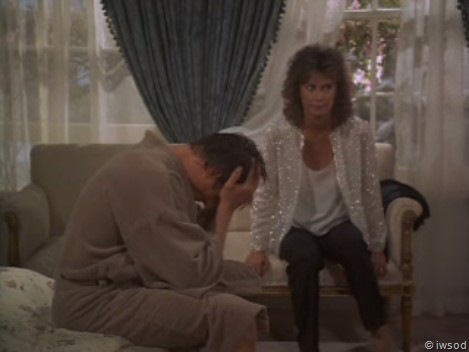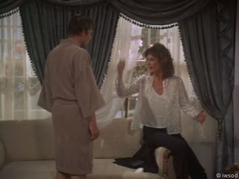 Lee buries his face in his hands, he can’t believe it, and Amanda looks around as if to say ‘oops’.. duh duh duhhhhh and the episode must have cut to a break here – love KJ’s funny expression here looking around.. good thing she isn’t looking at Lee too as err Lee’s sitting there in his robe, with his legs ummm… NNNNot Closed!! Oh my..