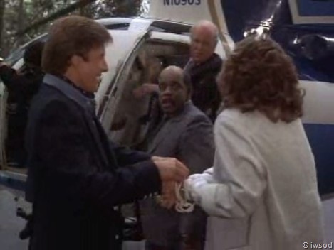 6. I usually don’t pay too much attention to the fights, stunts, and chase scenes in SMK (surprise, surprise), but I actually like the helicopter part in this episode and always watch it through. I think I recall reading on the forum that BB’s stunt double received an award for his work on this sequence. I have never been able to see a harness for him, but I assume there was one!