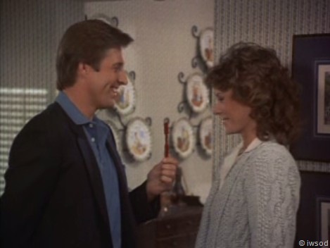 What happens on the extra day???!!! We only see Lee and Amanda stay one night?! Which would have been the Friday night.  Did they stay another night? We see what looks like Amanda arriving home right before Dotty and the boys- Sunday afternoon!  Also, in the tag- Amanda is wearing a different cardigan! It is the same colour though, and the rest of her outfit is the same.. but why the different cardigan? Hmm.. maybe a mistake!  It’s fun to ponder, although I don’t think there is anything in it- drat! I don’t see them having a little fling and then going back to the way things were.. Hmmm maybe Amanda stayed another night and treated herself on the agency’s dime! Smile but then.. why would Lee still have her toothbrush?? and he is wearing the same outfit!  Hmmm.. It doesn’t fit! but.. it leaves open a very fun range of possibilities! Smile