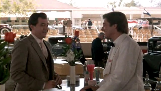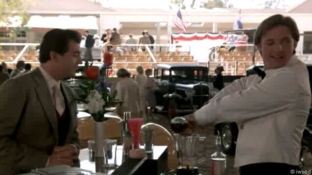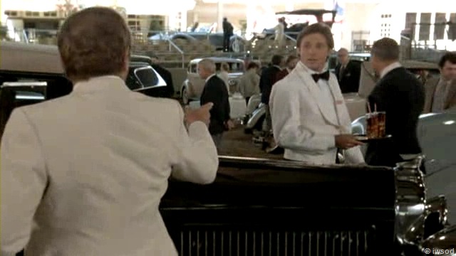 Lee explains to Amanda that all the money men are meeting at the auto show while it is closed to the public. I love how Lee finishes describing them by saying ‘ World Class Swindlers!’ and then we hear a guy clear his throat behind him.. one of those filthy rich swindlers wants a drink Carlos!