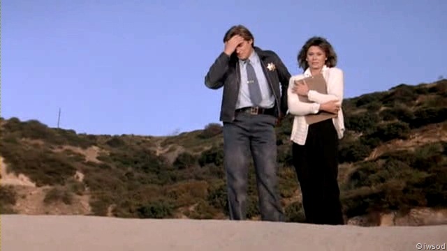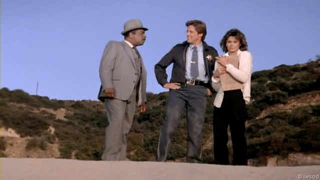 Masterson gets up to the carpark and tackles a guy in white.. we can only assume it’s Perrine but we don’t actually see him. weird! guess because it is stunt Perrine! Anyway, Officer Lee catches up in time to see Masterson take off with his porsche! (open like that, I’m surprised it didn’t happen more often!) and… the chase begins.. although why Amanda had to go along for the chase I don’t know… maybe moral support for Lee! Haaa Lee asks the same question of Amanda..