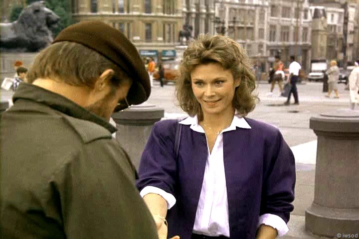 I can never get past the fact that Amanda complains about her new shoes hurting in this scene and then sets off to walk (or so it would appear) halfway across town to Harrods…