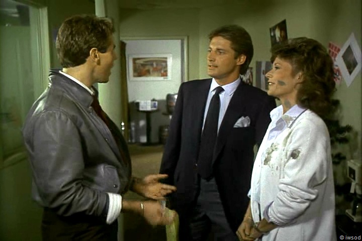 Just as Lee is leaving and opens the door, Amanda is on the other side looking for a pay phone.. and Auggie thinks his dreams have come true!