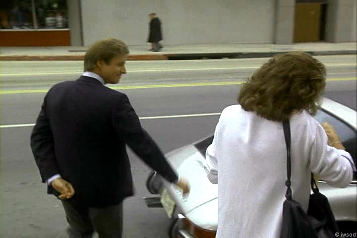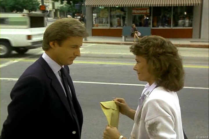 Amanda explains to Lee about the plot of one of the novels having a false panel in the microwave.. Love how Lee doesn’t question it, the moment Amanda finishes that thought- he straight away declares: ‘ Come on!’ and off they go in a hurry to Harriman’s home in the hopes of arriving before the baddies! ( LOL! on the wideshot we see they’re parked on the old Warner’s backlot.. man.. that building is in every second episode!)