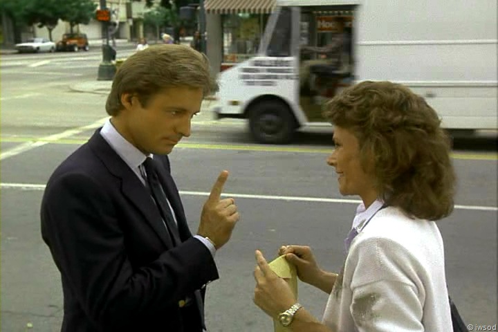 Just a little background–it’s very common for people in the US to have no experience with driving a stick shift car. The great majority of cars have automatic transmissions, with some sports cars (like Lee’s) and trucks having manual transmissions. This would’ve been the case in the 80s, too. I spent about a half hour in my high school drivers’ education course with a stick shift car, and then it was back to automatic transmission cars from that day to this one. I’ve always thought that if Lee wants Amanda to be able to drive his car, he should have someone at the Agency (not Francine) teach her. What does he expect her to do, pay for lessons to drive a stick shift out of her own pocket?