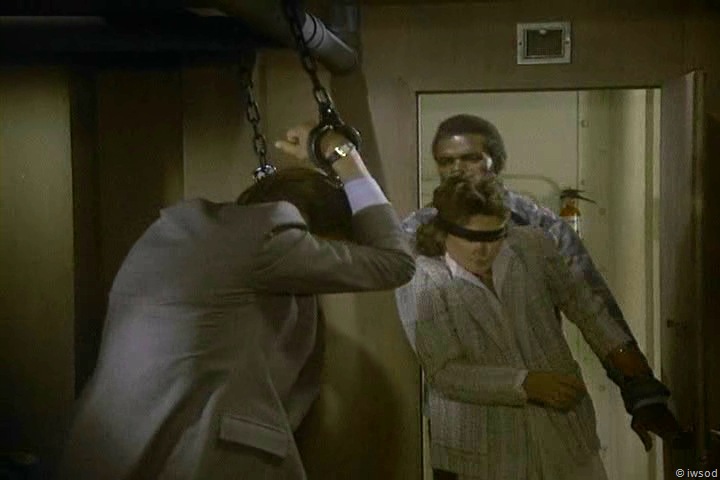 Amanda is lead down to the bottom of the boat blindfolded, and we see Lee in  a room furiously 2.06 BRUNETTES ARE IN.avi_002418818pulling on his shackles to get free of the pile he is tied to- you can hear how determined he is Grrrrr!!!!! He hears the door is 2.06 BRUNETTES ARE IN.avi_002421654being opened so he slumps down and pretends to be really out of it. The door opens and in comes Amanda ..Man! I do wish we had seen Lee’s face when he saw Amanda come through the door!