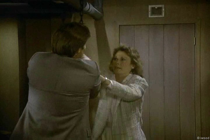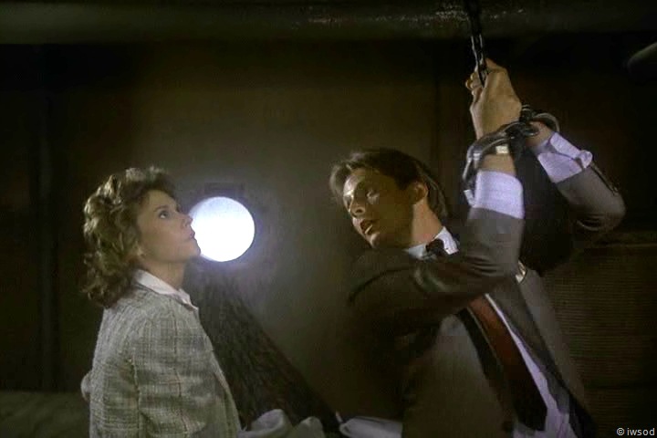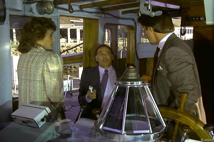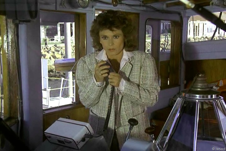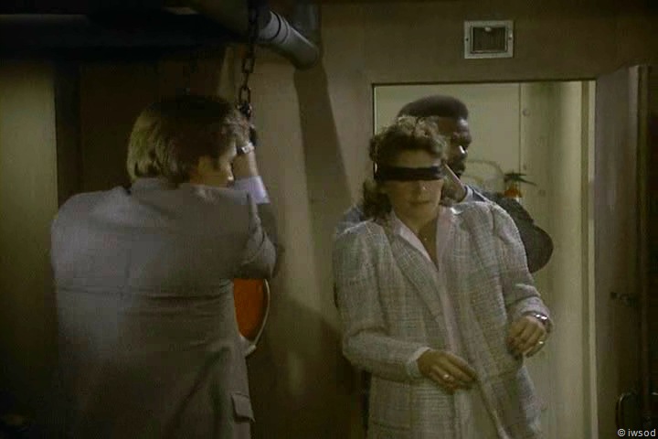 3. My main reaction through these final scenes was, “Why don’t you just get OFF THE DAMNED BOAT!” Instead they dawdle in the cabin with the microdot exchange, then Lee sends Amanda to the bridge to find a radio – seems like they might have found a pay phone on the dock, WHICH THE SHIP WAS TIED TO. Oh, well. Gotta give Lee his 10 minutes of Action Man footage, I guess.