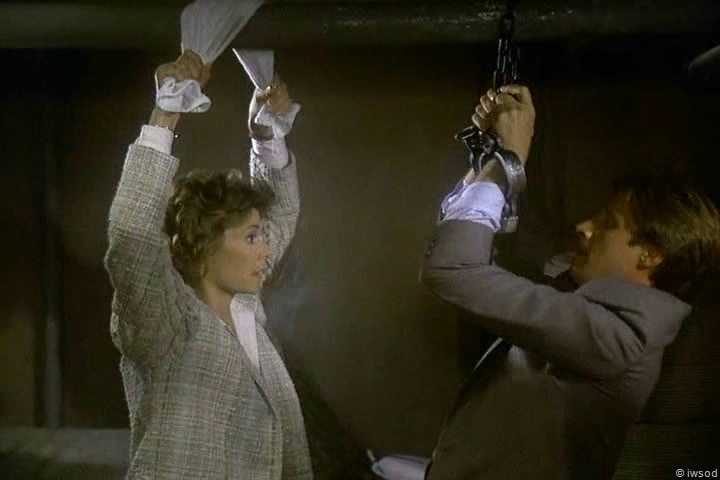 4. I love the scene with them hanging on the pipe. For all the obvious reasons but also because it reminds me of yet another scene in the film Top Secret. Val Kilmers character and his love interest are having a heart to heart whilst parachuting down together and they twist and turn to face one another just like Amanda does to Lee. Wish I could find a YouTube link for it but I can’t 😦