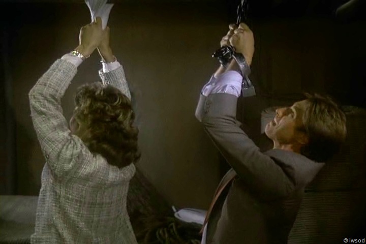 Lee returns to find out Billy is on the way  .. and Slimey Sinclair surprises them at gunpoint..and 2.06 BRUNETTES ARE IN.avi_002681314brags they’ll both be dead and he’ll be long gone before ‘they’ arrive. (LOL- just who does Sinclair think is coming? the good taste police? he doesn’t know about the agency or the microdot.. Hmm I guess he assumes it is the ordinary police!)  While Sinclair turns to look at Lee, Amanda swings her trusty handbag and knocks Sinclair off his balance.. way to go Amanda! What a woman! You can almost hear her thinking – take that you creep!!! Don’t ever touch my skin again!!!!