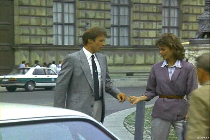 I think that Volkenauer is a wonderful character; he saves Lee, mocks him, and then asks Amanda out on a date right in front of him! James Delano, Davy, the Baron, Alan, and some other men who show an interest in Amanda may be involved in nefarious activities, and perhaps Lee talks himself into thinking that he’s protecting her by expressing his displeasure over her going out with them. But Volkenauer is definitely a “good guy,” and he lives in Germany, which would make a relationship between Amanda and him difficult, yet Lee is furious over this simple dinner invitation! Lee’s motto where any other man and Amanda are concerned is: “I…I just don’t see you together.” Follow those instincts, Lee.