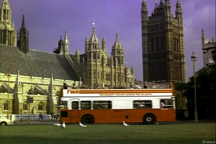 fulfilled.. let’s get on with the show!(Please!!!!!) Oh no… this is ridiculous! TWA are not done with us.. we have to watch a TWA advertisement on the side of a bus passing the houses of Parliament! ugh!! Wait a minute! We saw this same shot in To catch a mongoose!!! we did!! we did!!! https://justwalkwithme.com/2012/07/10/1-season-two-episode-1-to-catch-a-mongoose-scarecrow-and-mrs-king/ here! at the bottom of this post you can see it! LOL!! Not only were smk saving money by sucking all the $$ out of TWA they could.. they were sucking whatever value out of their filming they could get too!