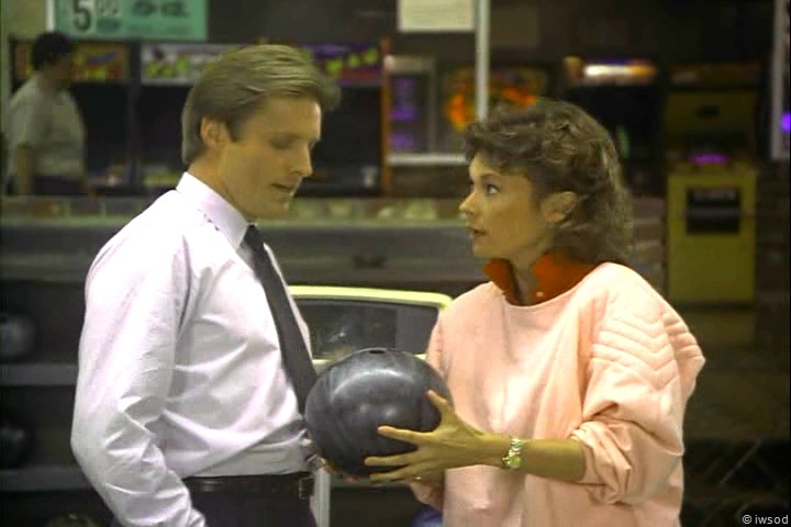 Bruce Boxleitner grew up in the Chicago suburbs, where bowling is very popular … and competitive! He probably went bowling with his family as a kid and later with his friends when a teenager. Chicago summers are hot and humid; the winters are cold with bitter wind chills, which is a big reason for bowling’s popularity there. I figure Amanda’s strike ignited BB’s competitive nature, so Lee just had to match her … pin for pin. It would be funny if TPTB let these two go head to head for a while longer, so Amanda could frustrate Lee by setting the standard in each frame.