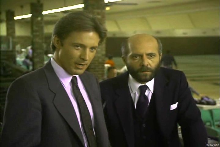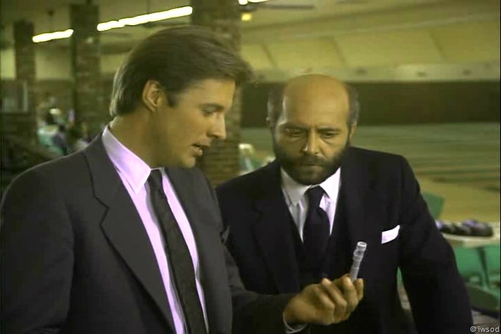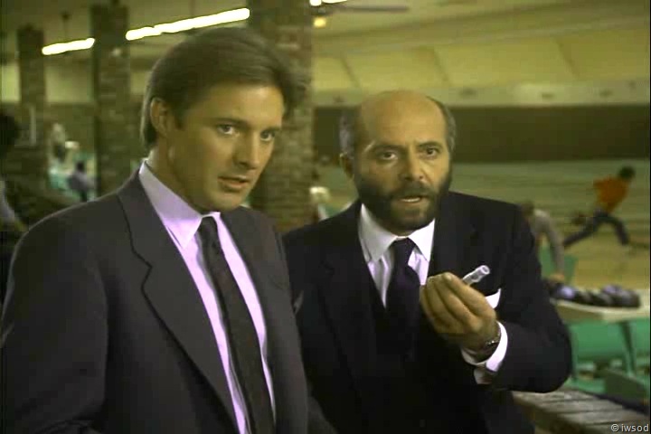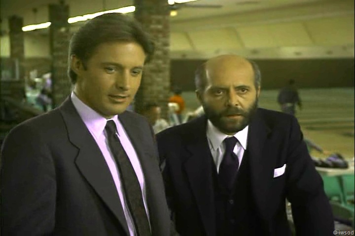 Anyway, on with the show! Lee, Amanda and Yuri make to leave the bowling alley and check out the Balalaika restaurant nearby – maybe they can find out more about Barkhov and Ulanovsky there.. Only, before they exit the bowling alley, Lee spots two pretty inept men staking out the place.. [ Oh the irony! they were leaving to find Barkhov and Ulanovsky- and ta da! here they are!!