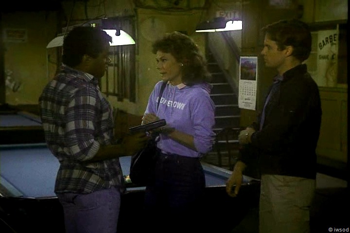 Lee didn’t want Amanda to go into the local Laundromat, surrounded by others to collect a precious microdot?? Okay, they are waiting outside the pool hall- but that is not ‘ nearby’!!! that won’t stop a bullet! I find this situation scarier..[even with their so called ‘back up’ ] these guys are killers.. and.. they are in a secluded, closed pool hall- alone!!!! ??? with no witnesses!! [Including Lee and Emily! ] Maybe this experience freaks Lee out: and this explains why he acts as he does in Brunettes?? I find it weird..
