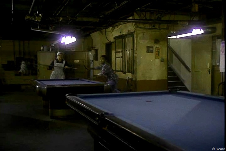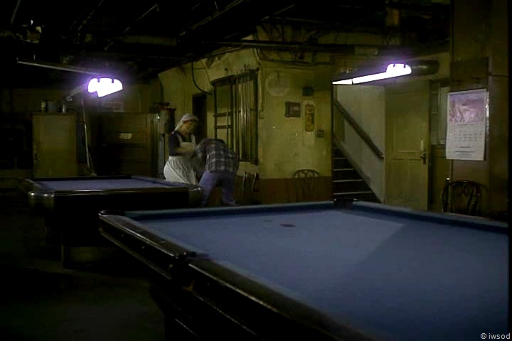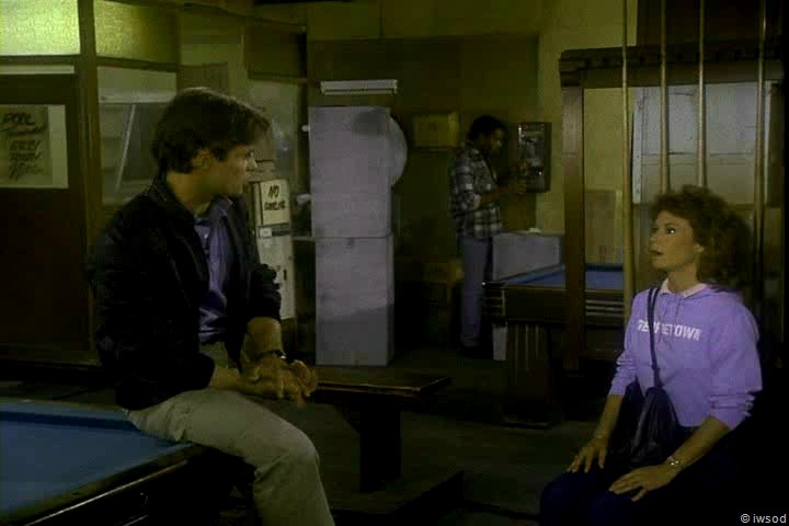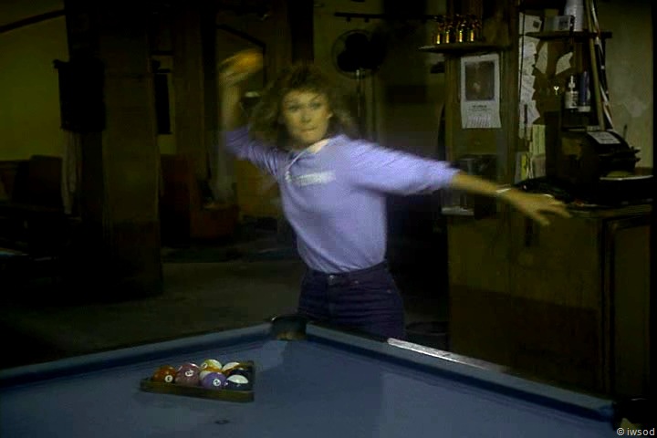 Something random that always strikes me in the pool hall scene is Amanda’s throwing arm! I know KJ was heavy into tennis, and it shows as Amanda sends the ball sailing with great form. We see this same good form in Dancing Weasel. I’m always very impressed. Seriously!