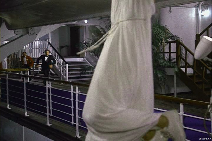 There are a few mistakes here in this scene.. just where do I start? well.. I’ll leave the best till last Winking smile firstly.. when Amanda arrives under death boat C she lifts her dress hem and you can see