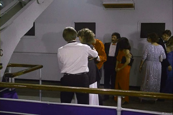 6. Oh, I never knew about the script with the dancing in it! That would have been soooo swoony. Wonder why they took it out? Too much too soon? But it seems so appropriate to dance on a honeymoon cruise. Maybe they didn’t want Lee and Amanda being too too cozy because it might have tempered the all-out shock of Lee’s at the wedding kiss. I do like that you pointed out the smile on Amanda’s in the wide shot. I never notice any of this stuff, although in my defense, my viewing conditions are not crisp, clear, and relaxed so I’m sure that’s part of it. The other part would be that I’m clueless by nature!