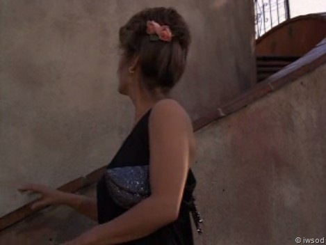 WINK ALERT!!- I never saw that before!!.. Again, this is where having the clear dvds brings all kinds of rewards Winking smile  Lee wearing a tux and smiling was enough to send me into a babbling fit.. but wearing a tux, smiling and winking? To take the words out of Amanda’s mouth: That’s asking too much!1thuddyI admire Amanda’s ability to keep her head around Lee in a tux. She is one Strong Woman!!! I love that dress Amanda is wearing – anyone hate it? Feel free to disagree, but I think she looks gorgeous.. (and the long white dress is lovely foreshadowing of the wedding coming up the next day!  ) I’d happily wear that dress on a night out.   I love the back on this dress. She likes to go for black or white evening gowns doesn’t she..