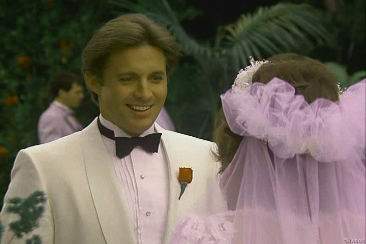( Winking smile ) See what the next bride was wearing? a white suit… I would have thought Amanda would go for something like that too given the marriage isn’t real. I guess with all the frills and lace we could say she was overcompensating! (not to mention it is easier to jump out of a car in a big skirt than a short a-line skirt 😉 )