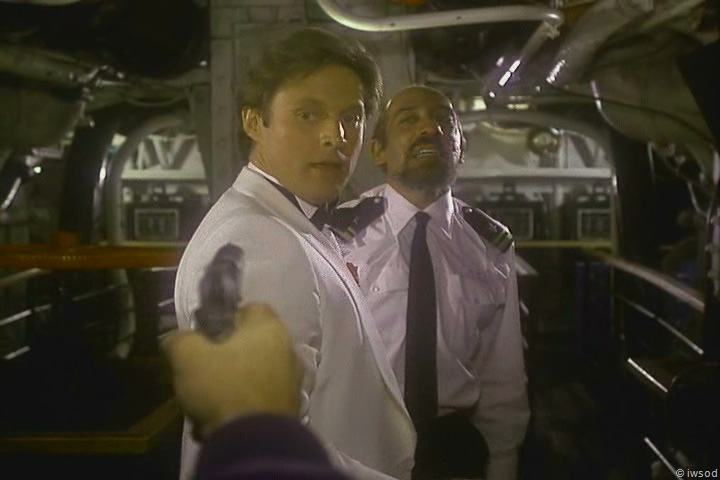 We rejoin Lee in the engine room where he runs into crazy eyes Gretz…..whoa!!!  Gretz actually shoots Lee’s gun out of his hand!!  Haaa! Love the evil crazy eyes laugh he does when he gets Lee! So over the top- he’s funny! mauhahaaa!