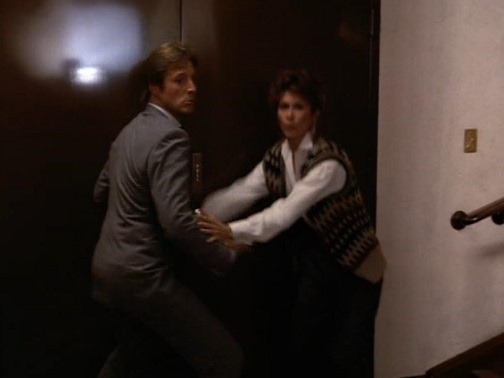 Or these. (AK does yell Lee’s name twice in the kitchen after she finds Frank Bodine and the ski-masked baddie pops his head in, but she is calling him for help and so I decided not to count that.)