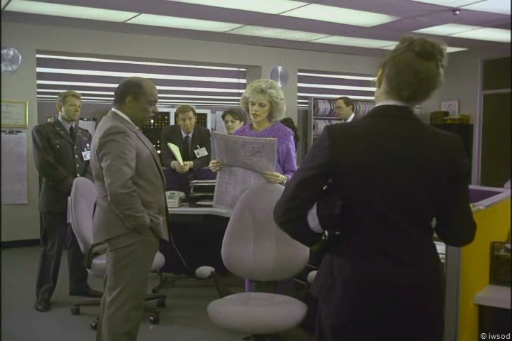I too find it a bit odd that Francine is reading the newspaper article out loud to the office workers. Does no one else read their own paper? And what about Billy? It is well established that Billy is very routine and does things very precisely (If Thoughts Could Kill – makes coffee at 11:15, Reach for the Sky – steeps his tea with a stop watch, Photo Finish – reads his paper with his morning coffee and donut in his office). I guess they donut shop was out of donuts this morning – messed up his whole routine! Now he has to get the news from Francine. Ugh.