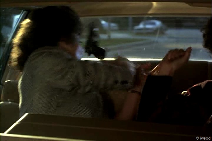 Lee does love to jump on the hood of a moving car and always with such total abandon. Also love how Amanda doesn’t just acquiesce and puts up a bit of a struggle. There’s a shot of Amanda after Rita makes her you wouldn’t shoot a lady statement. It shows Amanda looking at Lee to see what his response is going to be. I like that little shot. It’s like she really wants to hear what he has to say. Will it be a little sex or a little scandal? It turns out that he is a gentleman and Rita is no lady. Also love the little aside to Amanda to see if she is all right, because that was his true concern. Notice how he doesn’t go over to Rita to cuff her or try to restrain her in any way. He stays right next to Amanda. Still in protective mode.