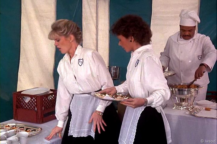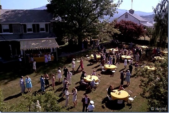 That crane shot has to be stock footage – I don’t see any PP folks walking around in black and white uniforms plus the awning and yellow tablecloth are all wrong!