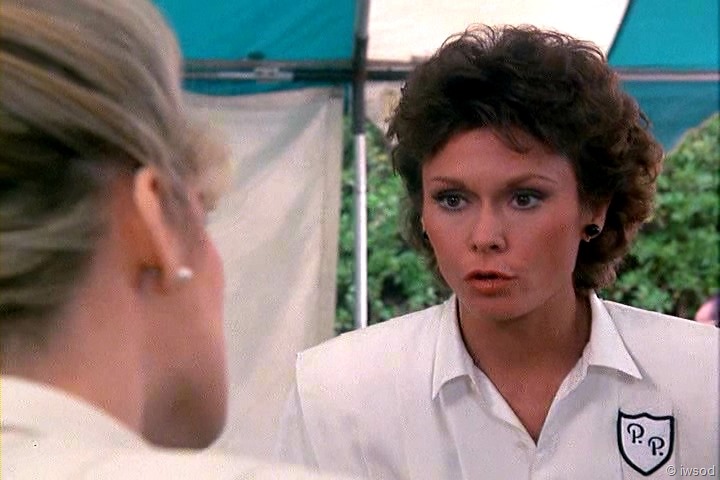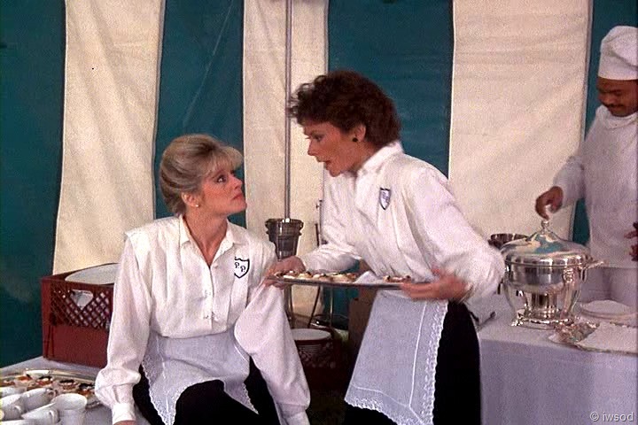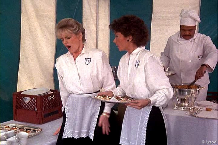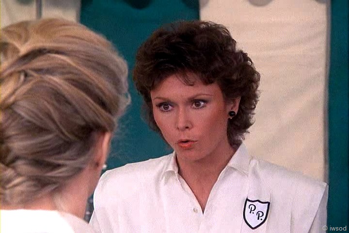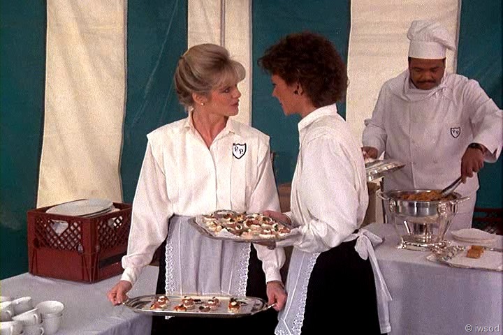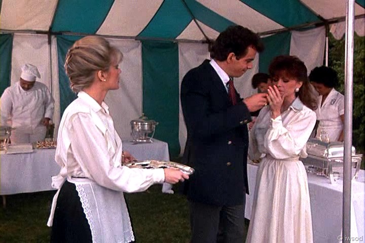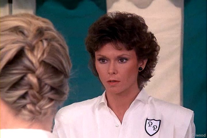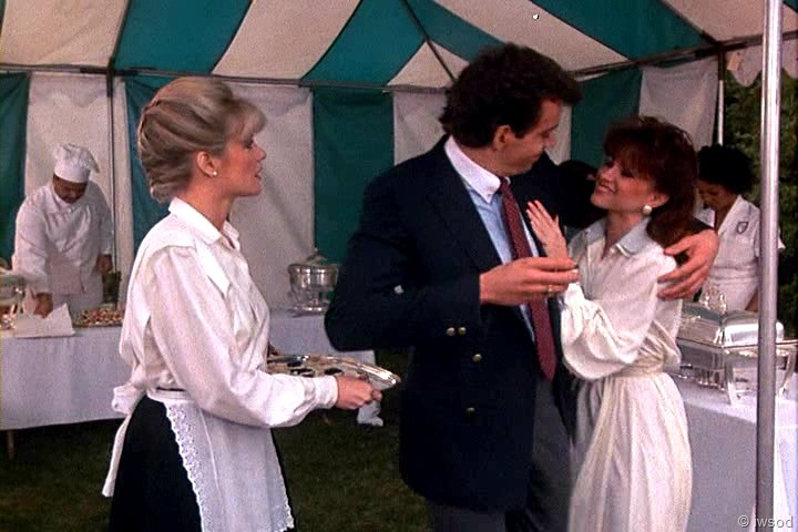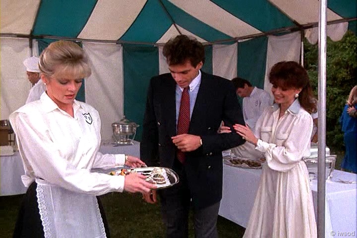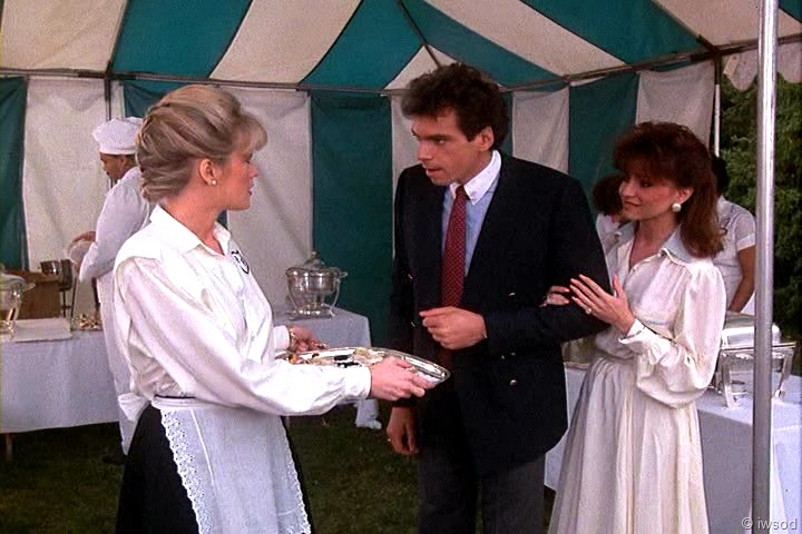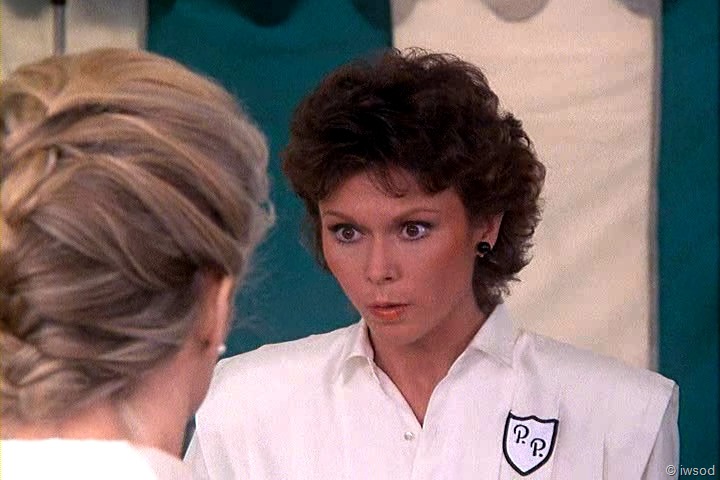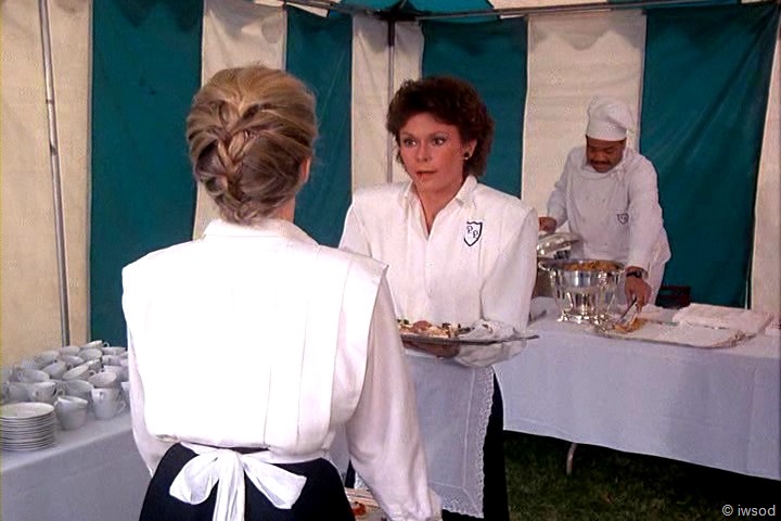 Ahhh, no one cares about poor Sally. She must not have been very nice to the other maids. I’m with you, iwsod, I am so not diggin’ those match-matchy earrings on Amanda! Very 80’s though, I think. I didn’t have pierced ears at the time this first aired, so I’m sure I wasn’t really up on earring fashion.
