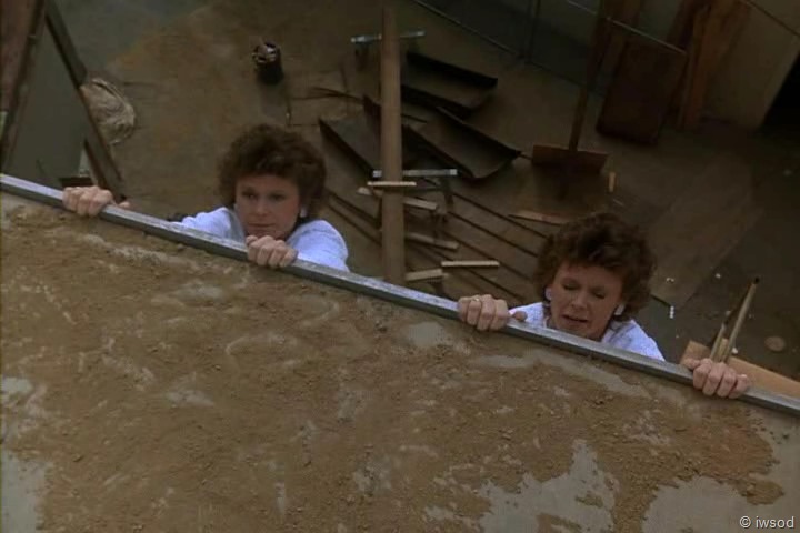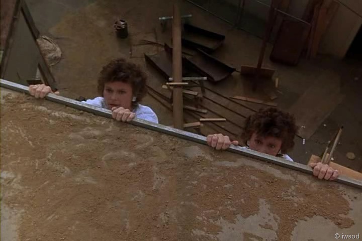 One more blooper: when you see both Amandas fall off the wall, they fall all the way off (the real Amanda for sure) – there’s no hands hanging on.