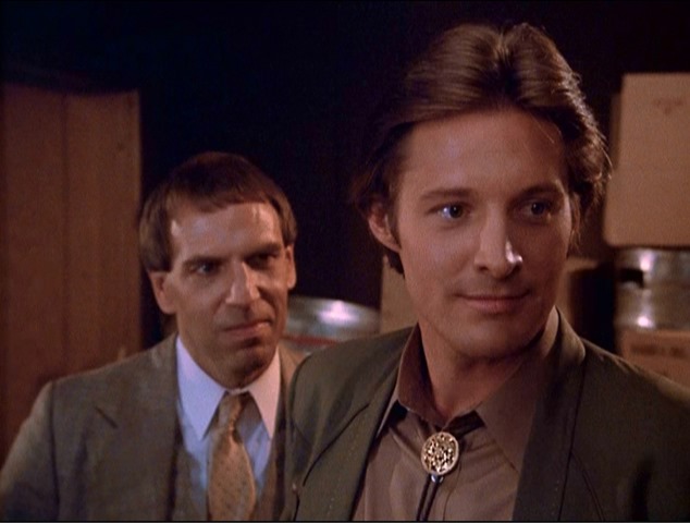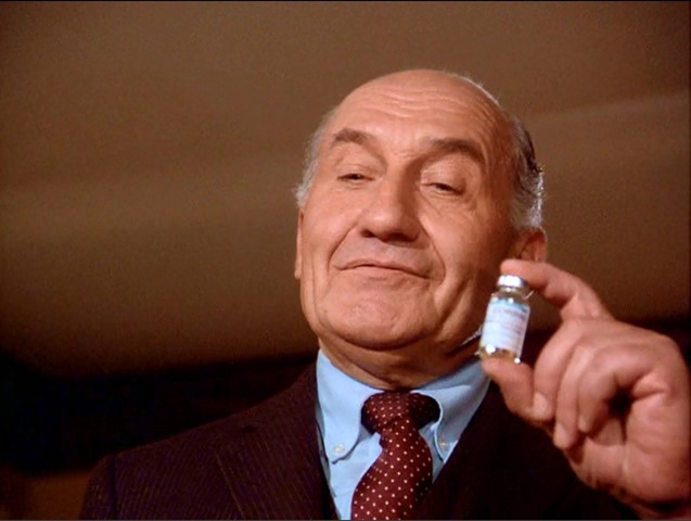 From the same episode pairing (ITCK/TGTN), we have the ex-Agency baddie doctor Glaser wearing the Connie Beth muscles’ tie (maybe the baddies have a rental shop for ties…???… Ties”R”Us? Tie Club For Men? smiley-confused013):