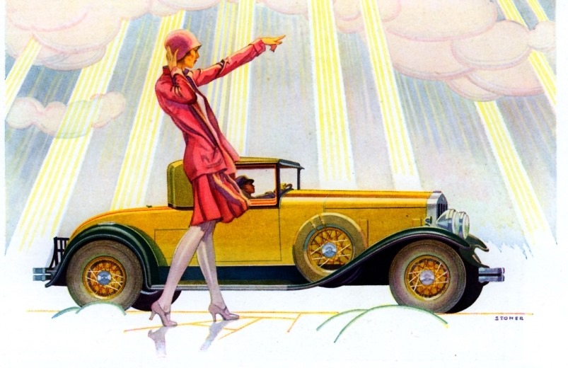Francine reminds me of a woman from the Twenties in an advertisement for the car in the picture behind her.![]()
