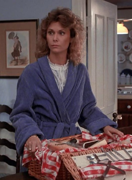I knew she must have made those sweaters/jumpers herself. She does “knit or something.” I had the impression that she had the pattern for the cardigan and the sweater vest and made them each in different colors. She has at least 3 in each style. Funny that a knitting company would market Mrs. King’s sweaters. I wonder if there was an evening gown pattern that was a take off from the black gown she wears in Gift Horse and SAAB and the white one from SOS? They look like they were made from the same pattern as well.