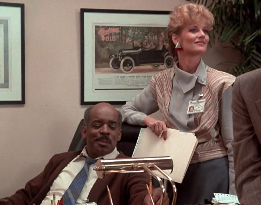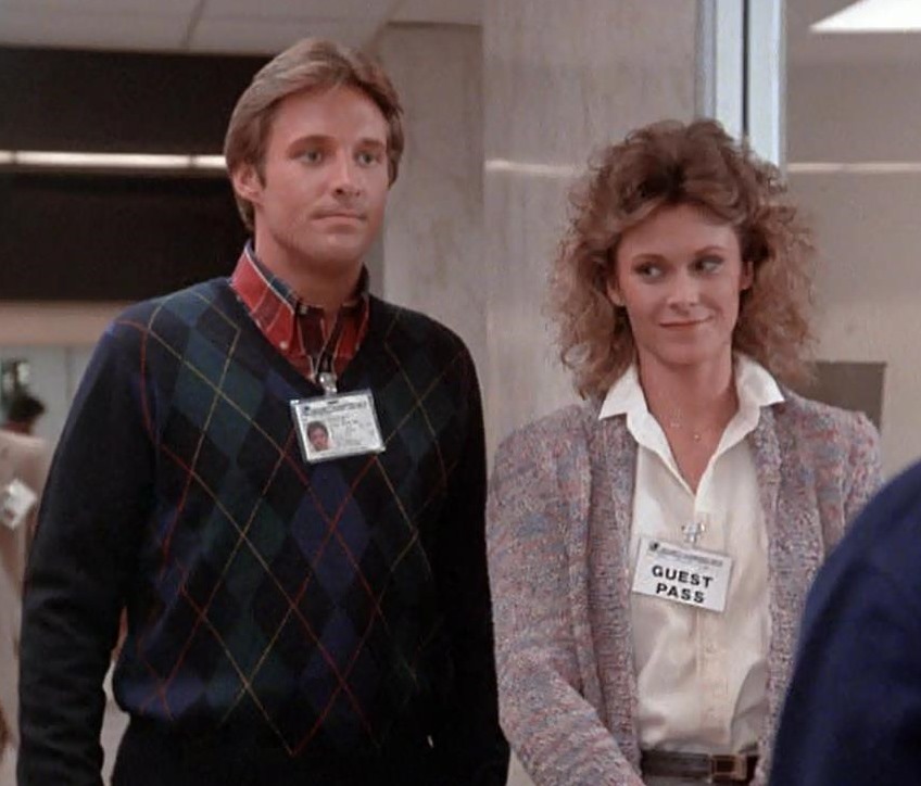 Here, in the office, he is one of the least spiffy (other than Billy) of the people there in a blazer and plaid shirt. First he learns that all the trouble is because of a couple called “The Stewed Tomato Two”