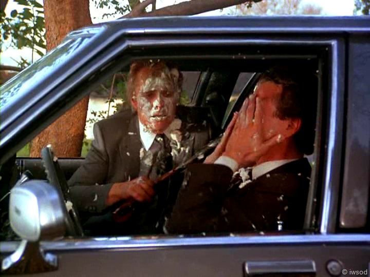 automatically pulls over to the side of the road to let Amanda out 😉 Amanda runs away –oh and those two clowns errr I mean baddies (Bozo and Krusty?) why.. it was very good of them to both be spontaneously and inexplicably knocked unconscious by a bit of whipped cream in the face!![]()