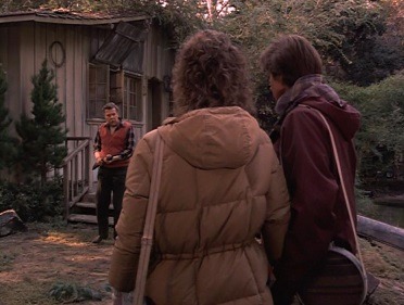 I’m not sure why they’re holding hands here. My initial thought is that Amanda may be feeling fearful since Rudolph has a gun and seems to be in a cranky mood – perhaps she grabbed Lee’s hand even? But I’m not sure that I really think Amanda or Lee would be that scared here. Maybe it’s just a confidence thing for her? Or an automatic thing for Lee to take her hand when a man with a gun is approaching? If this really were Rudolph’s daughter, I wonder if Lee would take her hand?