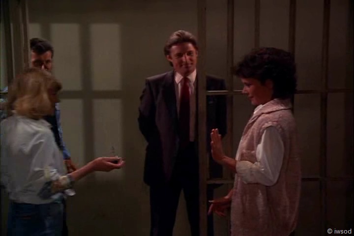 Amanda laughs nervously and Wilma and the guard leave. 2.22 MBF.avi_001532699[oh I really don’t like this huge cardy Amanda is wearing!!! ] I don’t know how Lee keeps a straight face here!!! Now 2.22 MBF.avi_001536703they’ve gone Lee casually enters the cell clearing his throat and looking around..
