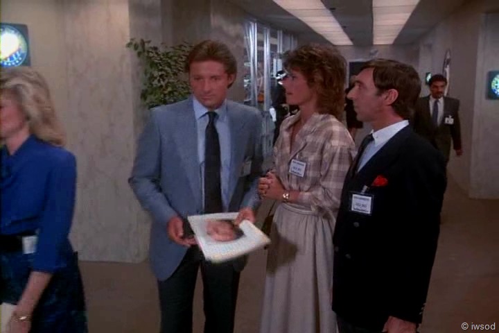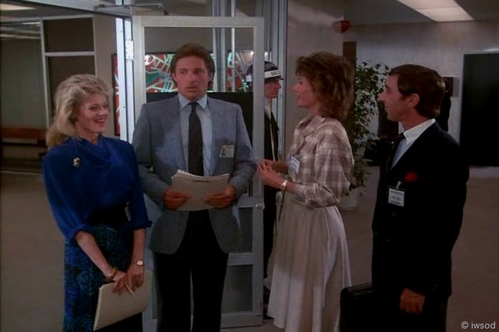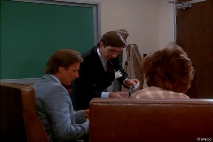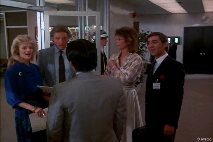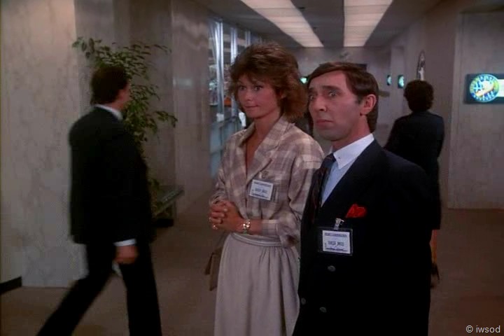 Amanda’s discomfiture at James’s bumbling during the slide show reminds me very much of Lee at the end of TFTime where Amanda is rambling on and on in front of Francine and Billy, and Lee is cringing and trying to rush her out of the office. Personal credibility is at stake in both cases, and the loss of credibility will mean teasing or some other form of penitence-inducing behavior.