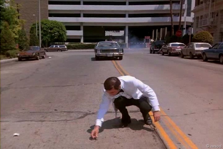 I also see that Amanda’s shout of “James” to warn him about the car doesn’t sound very panic-stricken… which might’ve actually been a useful thing–clueing James in to the danger. shrug Oh–and Stunt Amanda runs well… not all flappy-armed and girly like Stunt Francine or Stunt Amanda on other occasions. (Or is that Second Unit Amanda that does the flappy-armed girly run like Stunt Francine?)