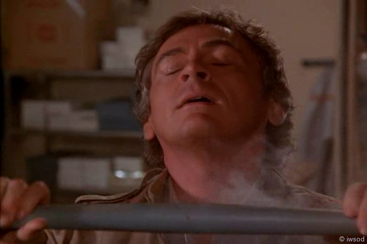 Of course I appreciate the skill that Frankie showed with the knife — slicing open Lee’s shirt and slicing that ugly tie without nicking our hero’s gorgeous, smooth, perfect abssssssssssssssss .