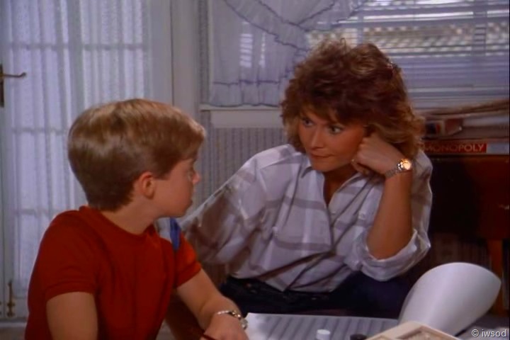 It also cracks me up that Phillip is playing with the uber-long phone wall-cord but doesn’t think to carry the phone around to the island or past it to be able to hear better! (Then again, maybe Amanda has a house rule that he can’t move the phone.)