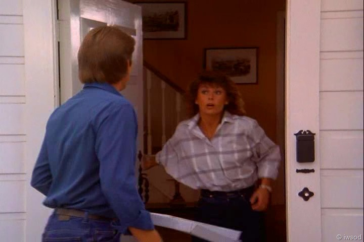 Yep, love this scene! Relaxed family time, funny Dotty, lovely and patient Amanda, miniature adults, and relaxed Lee in jeans and blue shirt- arghgljgjfhgabagl! I really enjoy Amanda’s “you paid him too much” then scooting back inside while Lee has a dumbfounded look on that splendid face of his. Swoon thud